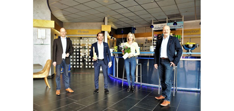 Die Eheleute Kastner freuten sich über die Glückwünsche von Bürgermeister Kai Louis, Wirtschaftsförderer Michael Dahmen und dem Vertreter der Interessengemeinschaft Heinsberger Industriegebiet Günter Kleinen.