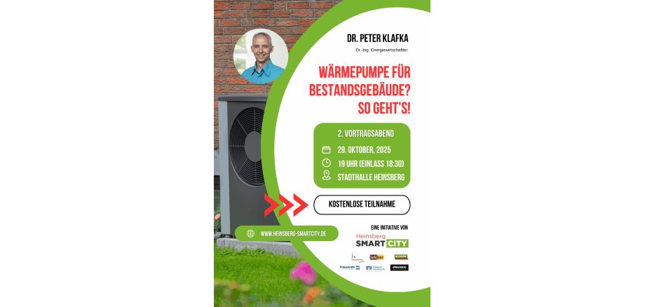 Darum lädt die Initiative Heinsberg Smart City den renommierten und ausgewiesenen Experten für Wärmepumpen, Dr. Peter Klafka, für einen Vortrag und eine anregende Diskussion in die Stadthalle nach Heinsberg ein.