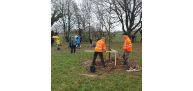 Die Pflanzaktion im Bürgerwald Am Klevchen, gegenüber der Städtischen Realschule, hat sich mittlerweile zu einer fest etablierten Tradition entwickelt. In diesem Jahr konnte der Wald durch 14 neue Bäume erweitert werden. Zu den bereits vorhandenen Baumarten kamen zehn Linden, zwei Eichen, eine Wildkirsche und eine Kastanie hinzu.