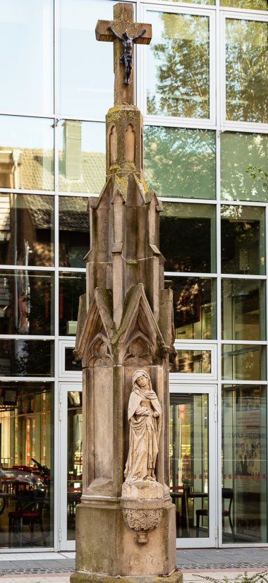 Dass Ökumene in Heinsberg bereits Mitte des 19. Jahrhunderts gelebt wurde, beweist dieses aus Sandstein gefertigte Kreuz. Katholische und evangelische Christen haben es dem damaligen Dechanten Peter Thomas Joseph Endepols im Jahr 1857 zu seinem 25-jährigen Priesterjubiläum geschenkt.
